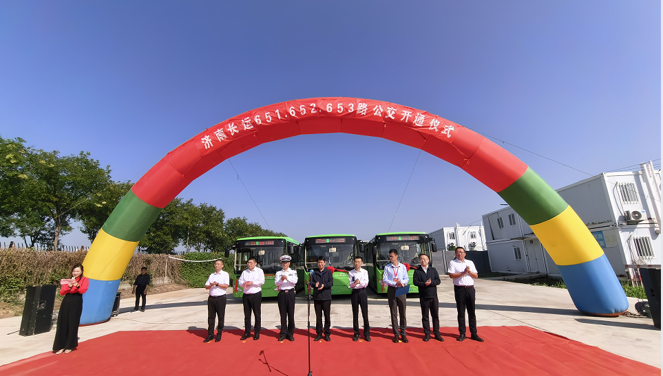起步区651、652、653路公交开通仪式在太平街道邝家方舱停车场举行。参加仪式的有济南市城乡交通运输局公交处处长范育兵、济南新旧动能转换起步区建设管理部副部长于宗晓、济南市公安局起步区分局交警大队大队长陈胜、济南新旧动能转换起步区太平街道党工委书记李程鑫、比亚迪股份公司总裁办行政部副总监历江华、济南长途汽车运输有限责任公司党委书记、总经理苏永光等领导。