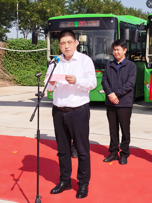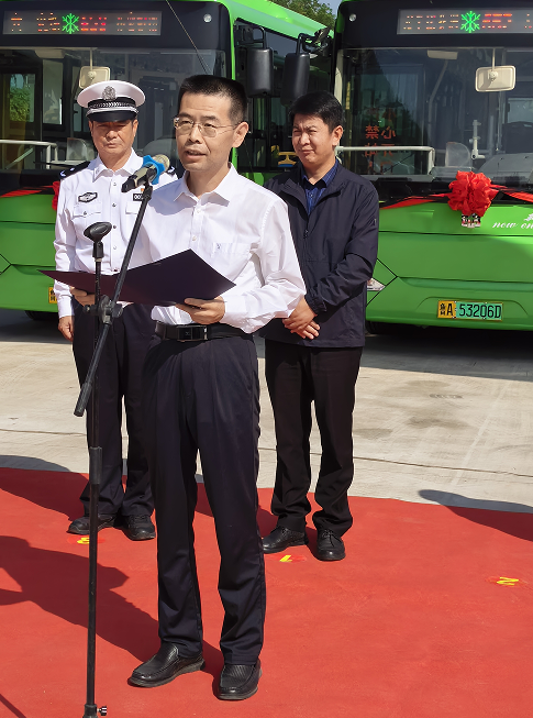 济南市城乡交通运输局公交处处长范育兵宣布线路正式开通。